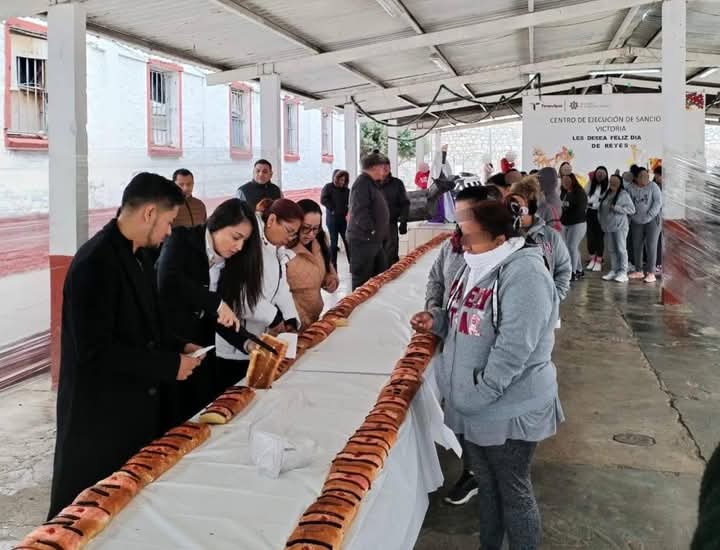 Ciudad Victoria, Tamaulipas.- Con una tradicional Rosca de Reyes de 30 metros de largo, el Centro de Ejecución de Sanciones (CEDES) de Ciudad Victoria celebró esta festividad en la que convivieron Personas Privadas de la Libertad (PPLs), sus familias, personal administrativo y de seguridad que laboran en este centro.